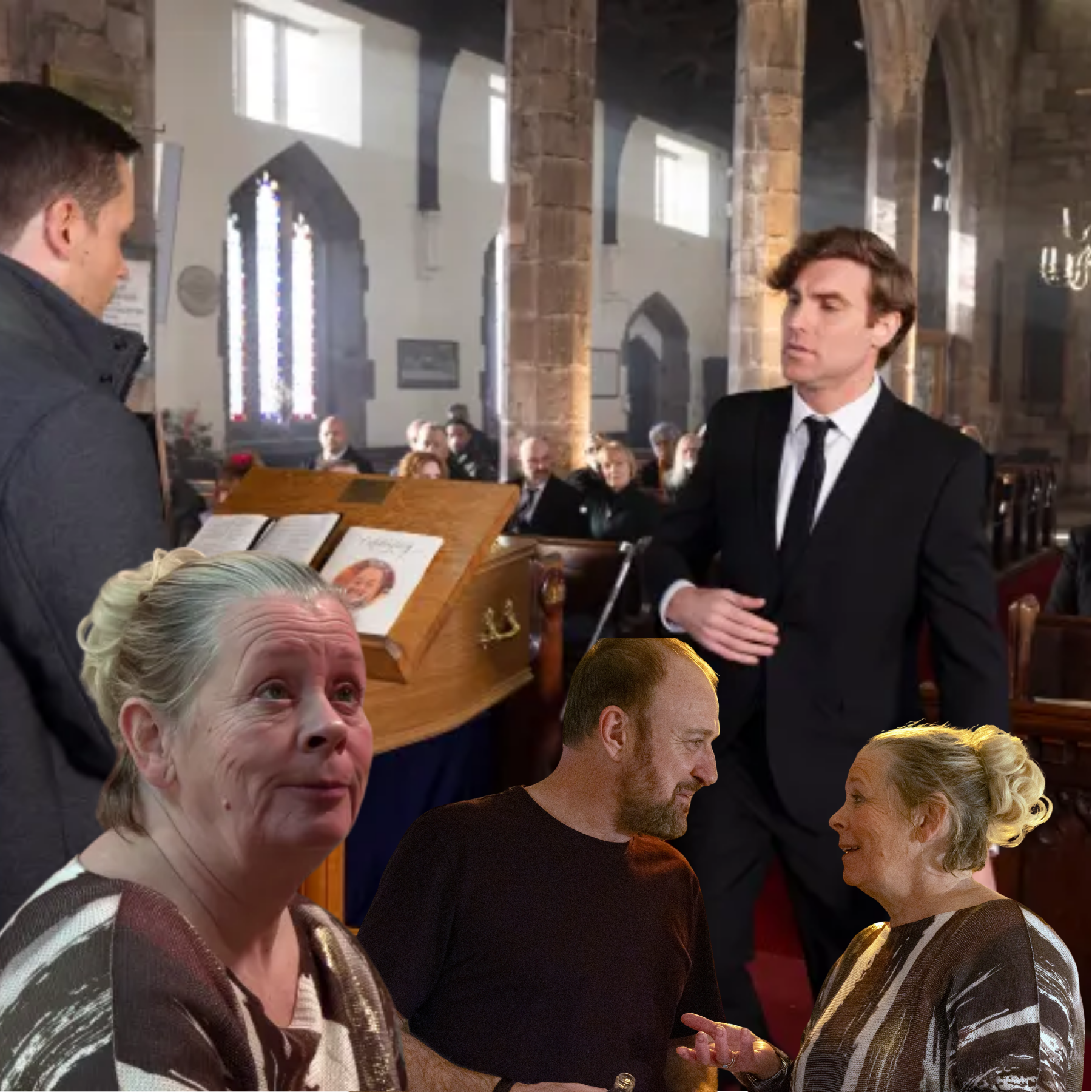 This eruption plays out following Billy’s funeral. Straight afterwards she takes her grief out on Dev Alahan (Jimmi Harkishin) with some nasty remarks and heads upstairs with a bottle of wine.