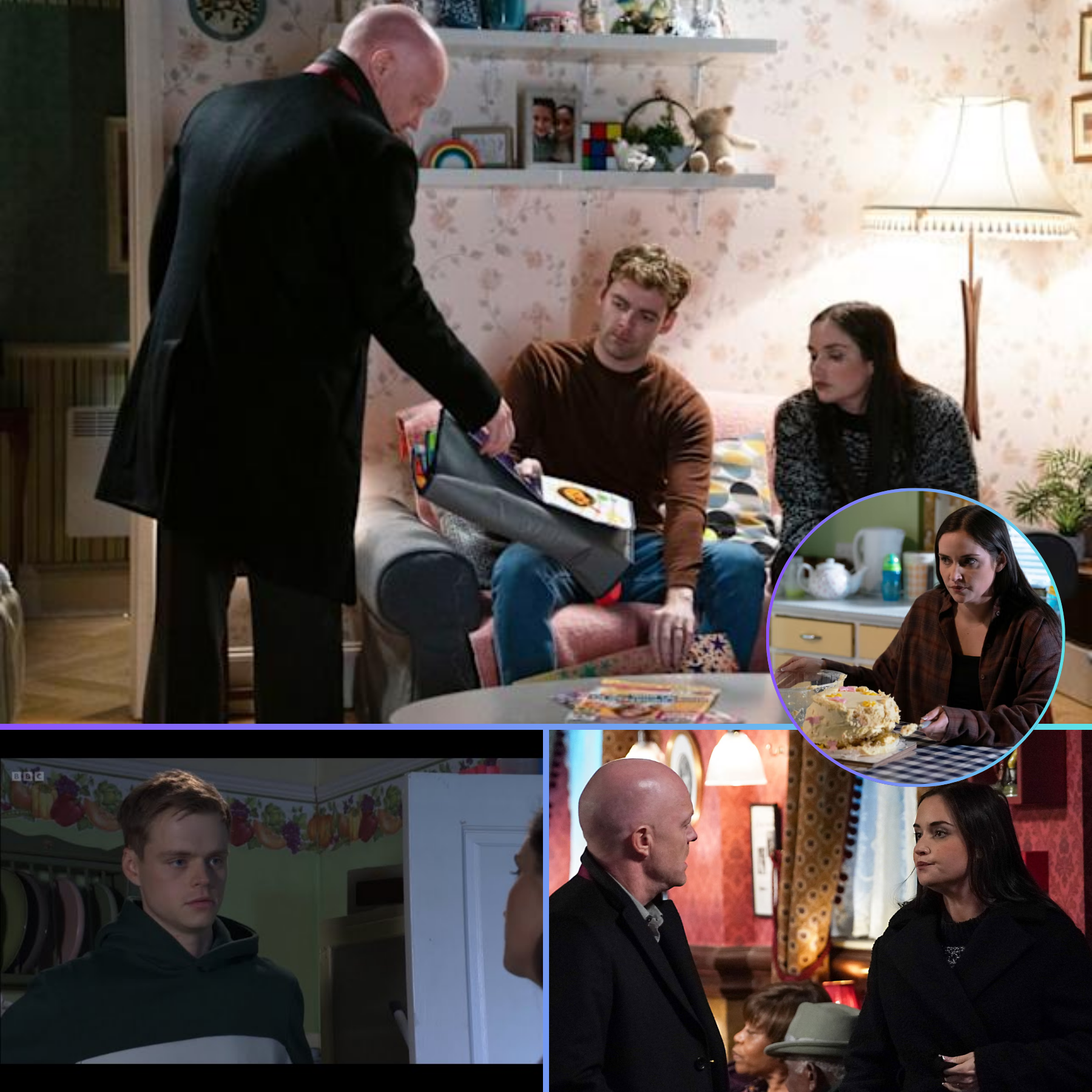 The moment Max Branning’s presence is implied, the atmosphere curdles. The resistance is immediate, sharp, laced with gallows humour. There is no warmth there — only history. Anger. Complicity. Silence that still screams.