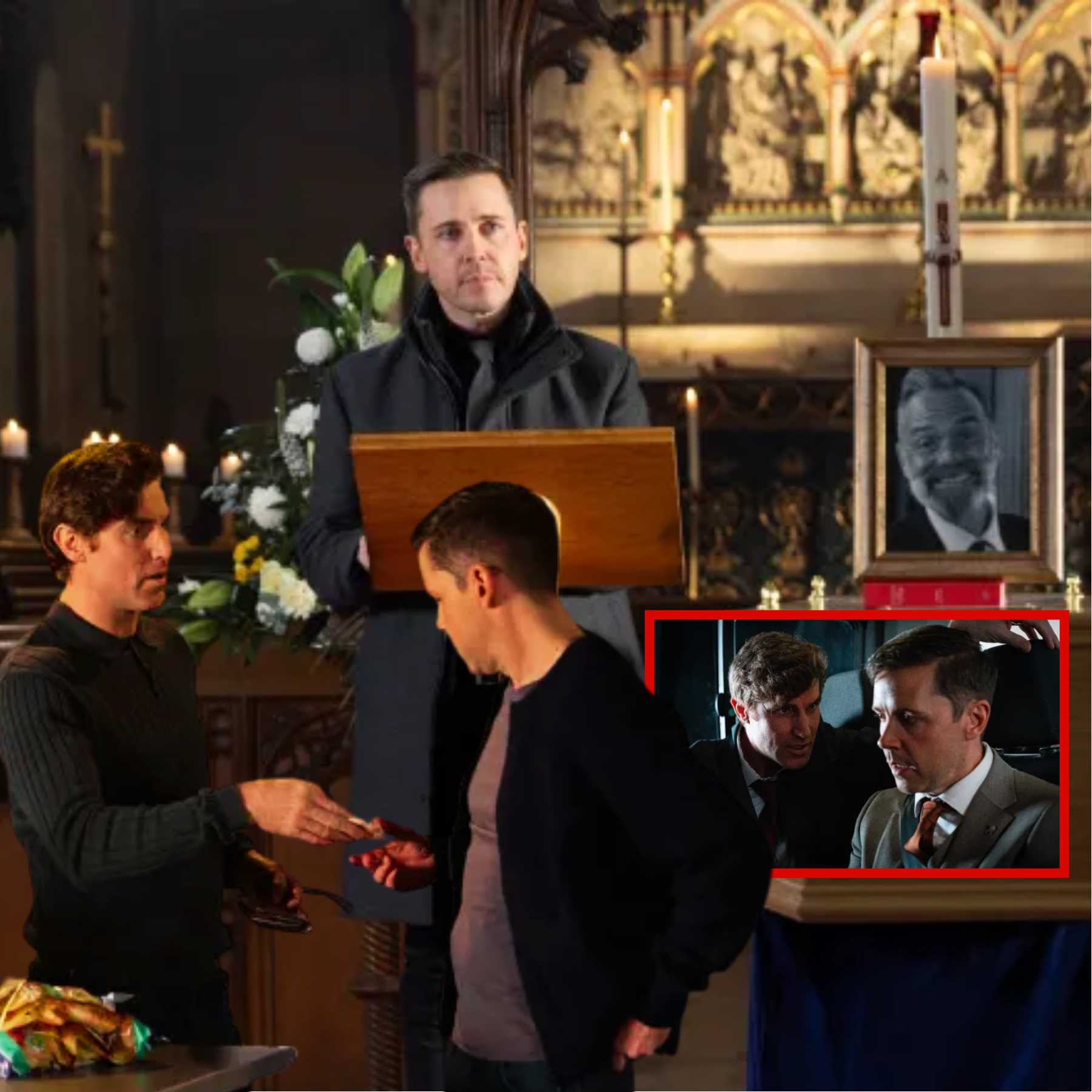 This vile behaviour continues even at Billy’s funeral. Todd has volunteered to deliver the eulogy, but when it gets to the moment when he has to step forward and say the words he’s written he looks across at the people assembled in the church and he’s too overcome with emotion to continue.